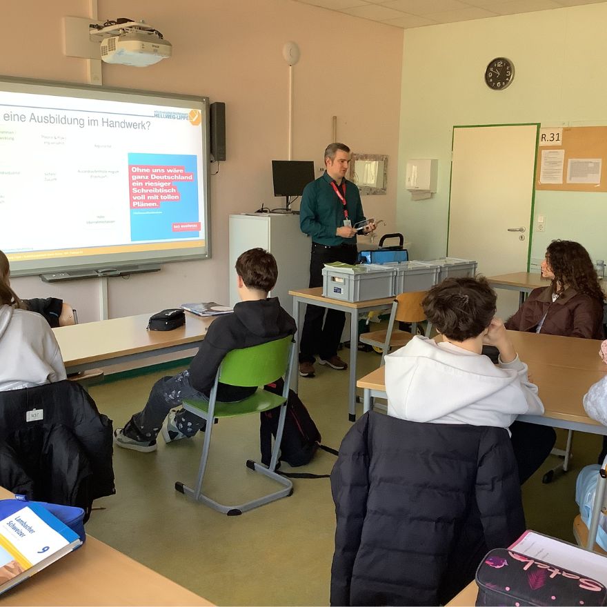 Berufswelt Handwerk: Herr Güner von der Kreishandwerkerschaft informiert die 9. Klassen über attraktive Ausbildungswege