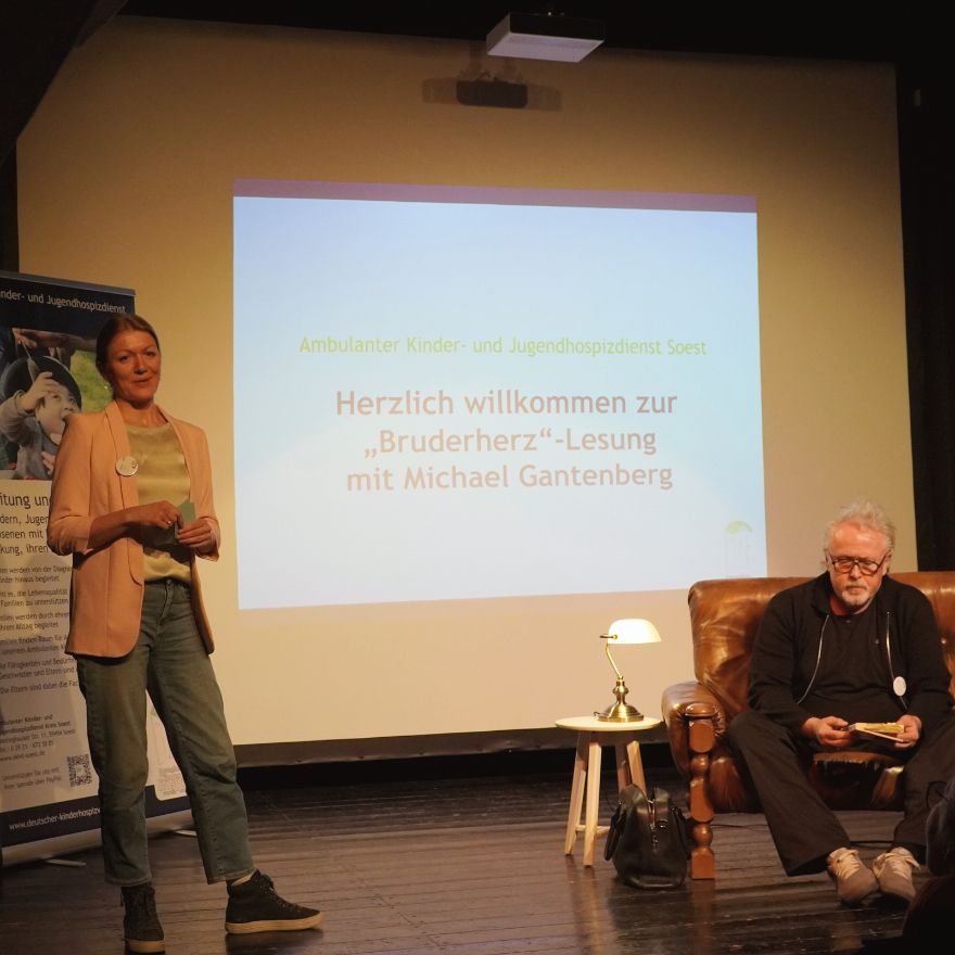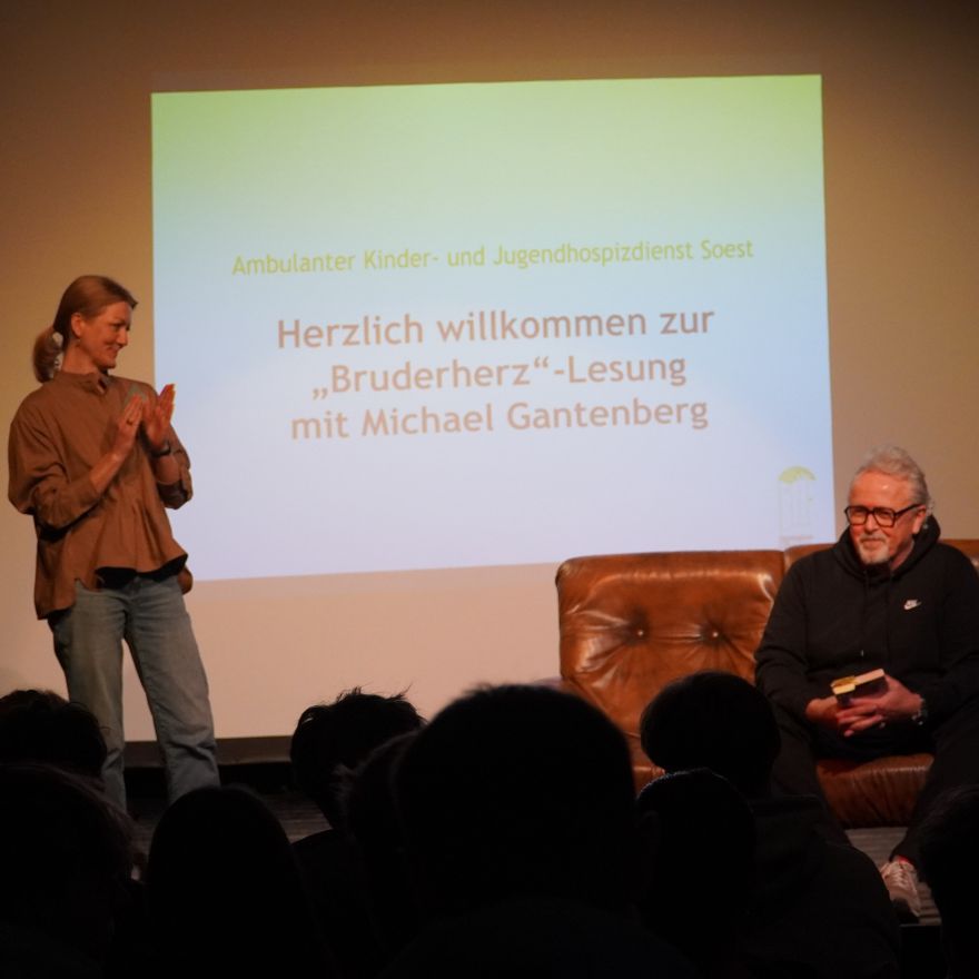 Gleich zu Beginn richtete Marian Grau selbst per Videobotschaft persönliche Worte an die Jugendlichen. Anschließend las Herr Michael Gantenberg, Schirmherr des Ambulanten Kinder- und Jugendhospizes Soest, aus Graus Roman. Eindrücklich machte er deutlich, warum ihn dieses Buch so bewegt: Es lädt zu einem Perspektivwechsel ein.