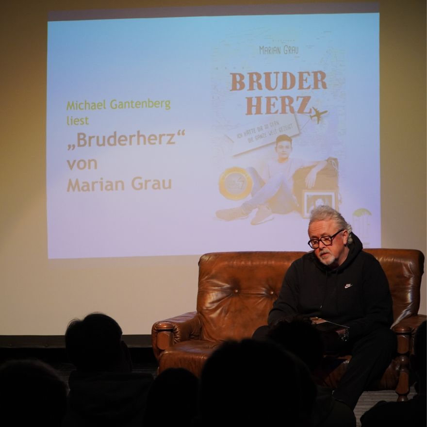 Durch die Lesung bekamen die Schüler:innen einen sehr persönlichen Einblick in Marians Leben an der Seite seines schwerbehinderten Bruders Marlon und seiner Familie. Die erzählten Momente machten deutlich, wie eng Freude, Liebe, Herausforderung und Verantwortung miteinander verbunden sein können.