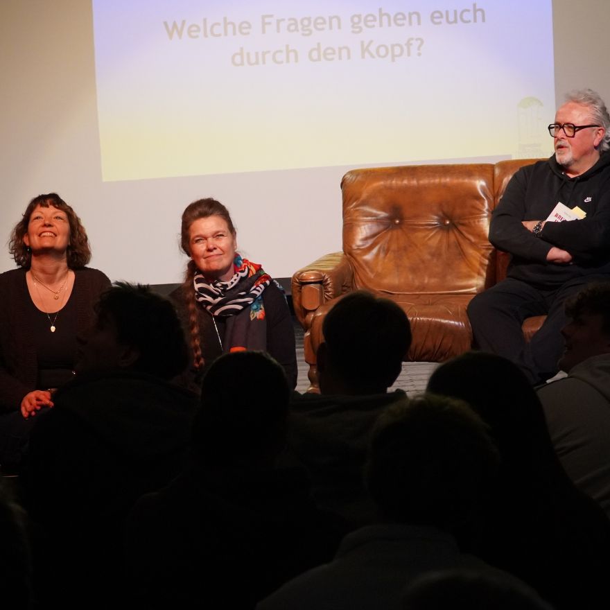 Im anschließenden Gespräch standen Frau Michaela Schulte, hauptamtliche Mitarbeiterin des Kinder- und Jugendhospizes, sowie Frau Ulrike Ködding, die sich seit 2018 ehrenamtlich engagiert, den Schüler:innen offen Rede und Antwort. Die interessierten und sensiblen Nachfragen zeigten, wie intensiv sich die Jugendlichen mit dem Thema auseinandersetzten. Besonders deutlich wurde dabei eine zentrale Botschaft der Hospizarbeit: Es geht nicht um die Begleitung des Todes, sondern um die Begleitung des Lebens – um Unterstützung, Entlastung, gemeinsame Zeit und Würde.