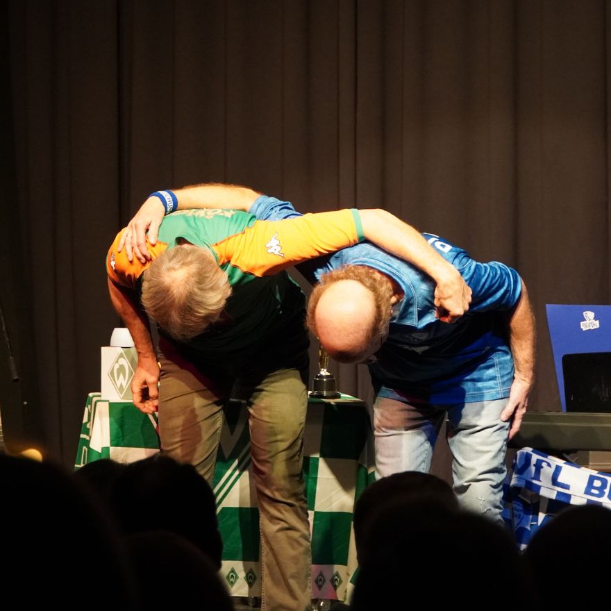Dabei verstand sich das Duo durchaus auch als pädagogische Instanz: Nicht selten wurden aktuelle politische und gesellschaftliche Debatten aufgegriffen, fußballerisch verpackt oder moralische und menschliche Entgleisungen nachgezeichnet. Trotz dieser Tiefenschärfe kamen Humor und lockere Stimmung nie zu kurz. Musikalisch wurden die einzelnen Episoden stimmungsvoll mit Gitarre und Keyboard begleitet – die Klarinette hingegen wurde, sehr zur Erheiterung des Publikums, von Königs „dem Publikum zuliebe eingestampft“. Ein rundum gelungener Abend, der noch lange in Erinnerung bleiben dürfte.