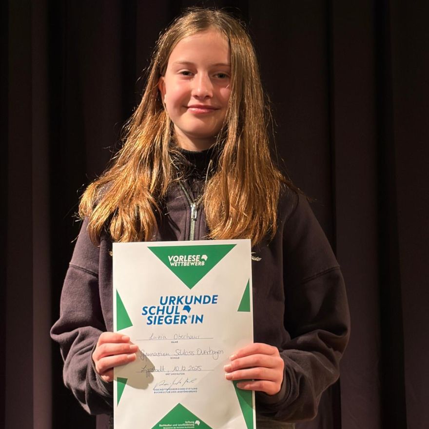 Am 11. Dezember fand das schulinterne Finale des Vorlesewettbewerbs statt. Zu diesem Anlass versammelten sich die sechsten Klassen im Schlosstheater, um den vier Finalistinnen und Finalisten aufmerksam zuzuhören. Für das Finale hatten sich Luzia Oberhaus und Simeon Moor aus der Klasse 6b sowie Alina Schäfer und Alisa Jiritki aus der Klasse 6a qualifiziert.