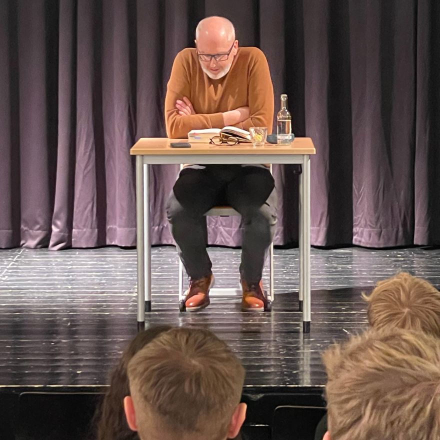 Nach dem offiziellen Pressegespräch nahm sich Peter Grandl ausgiebig Zeit für die Schüler:innen der Jahrgangsstufe Q1. Er las ausgewählte Passagen aus seinem erfolgreichen Roman „Reset – Die Wahrheit stirbt zuerst“ vor und gab spannende Einblicke in seine Denk- und Arbeitsweise. Anschließend entwickelte sich ein lebendiger Austausch, in dem Grandl Fragen beantwortete und offen über die Wirkung von Literatur sprach.