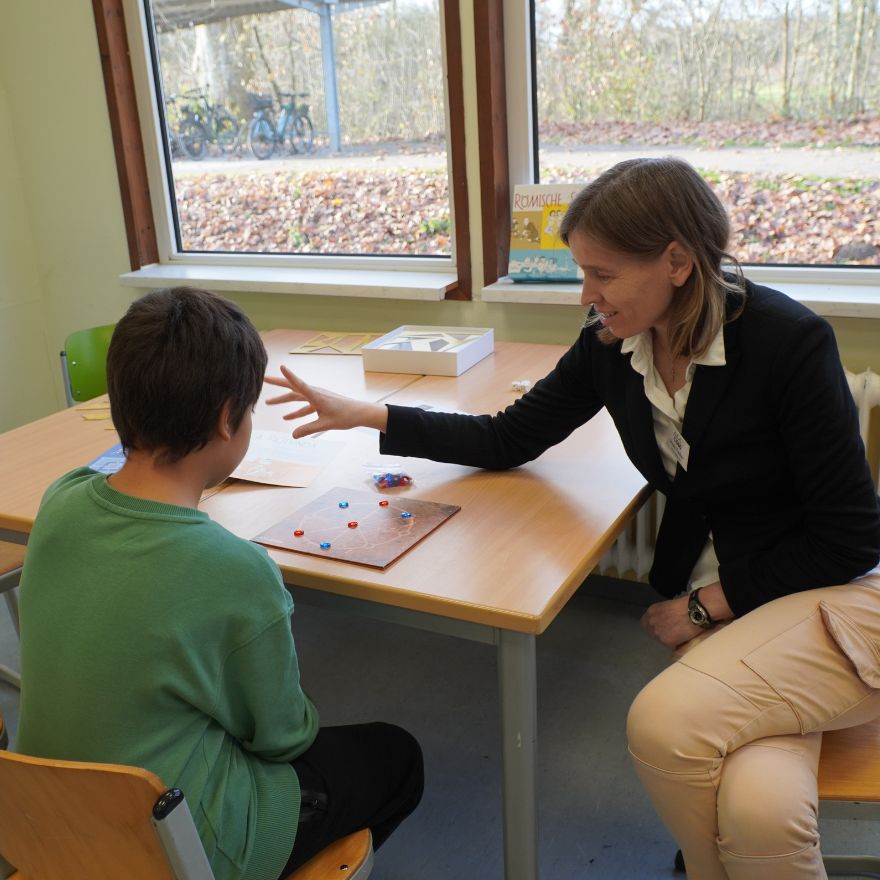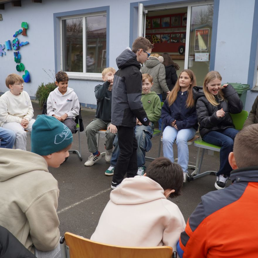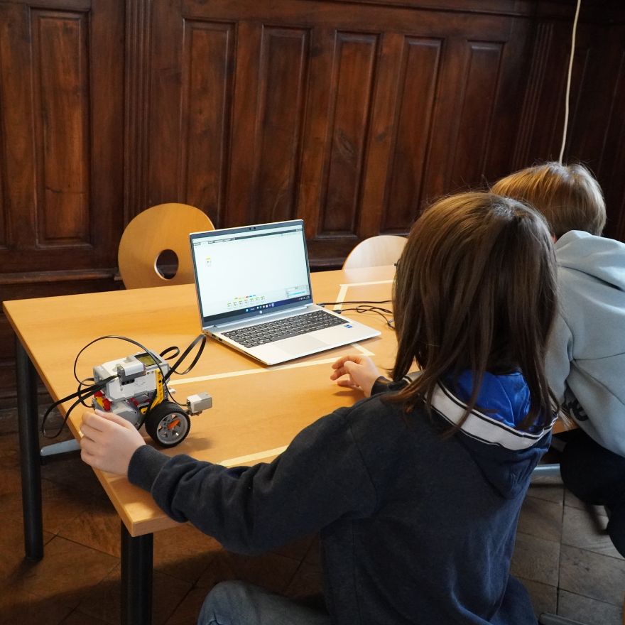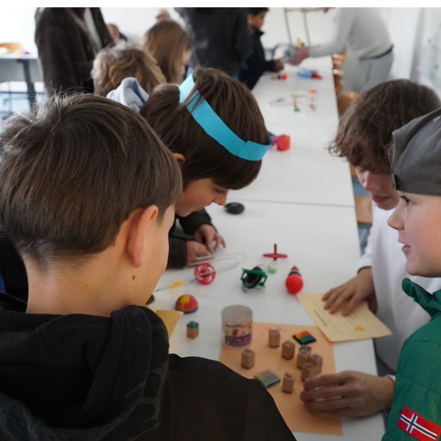 Auch außerhalb der Fachräume gab es viel zu entdecken: Im Schloss und in der Turnhalle konnten die Kinder ihr schauspielerisches oder sportliches Talent erproben. Im Theater standen Improvisation, Korkensprechen und das Ausdrücken verschiedener Emotionen auf dem Programm – zur großen Freude der mutigen Mitmachenden. Auch wenn die Roboter AG ein wenig versteckt im Turmzimmer zu finden war, fanden viele Besucher:innen den Weg dorthin und staunten über die von den Schüler:innen entwickelten Roboter.