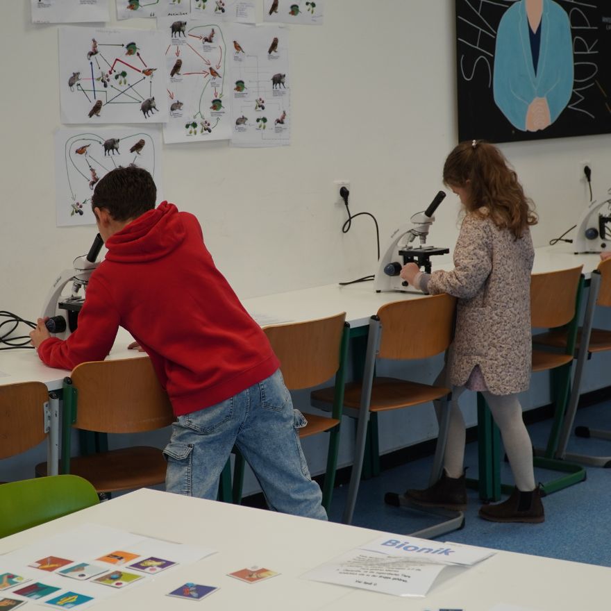In der Biologie begeisterte vor allem die Ökologische Forschungsstation, die einen facheingebundenen Unterricht im Freien ermöglicht. Am Mikroskop wurde es besonders spannend, wenn winzige Lebewesen plötzlich sichtbar wurden und für Aha-Momente sorgten.