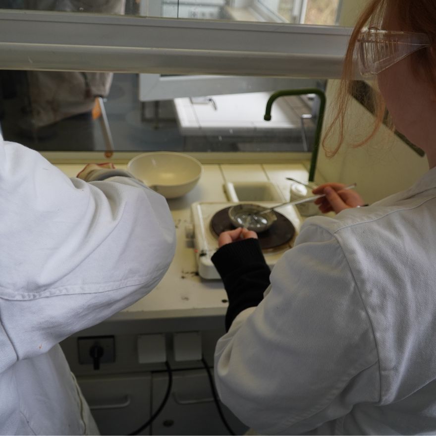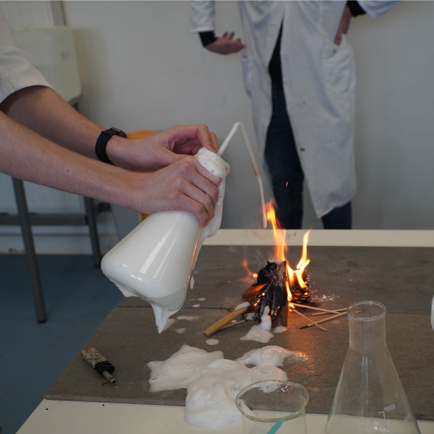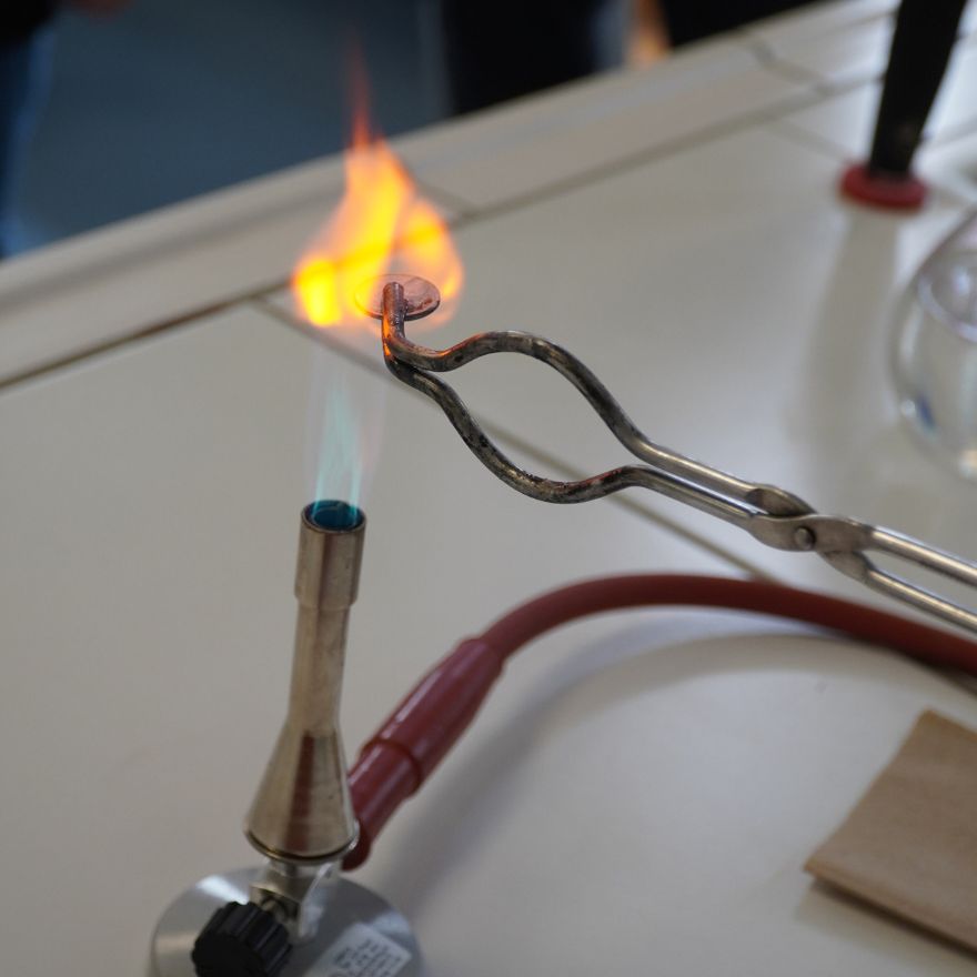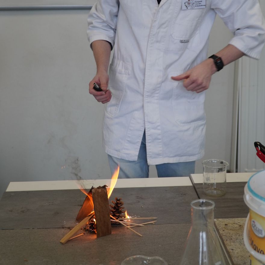 Besonders viel Betrieb herrschte in den Fachräumen: In der Chemie konnten kleine und große Forscher:innen staunen, wie aus einer unscheinbaren 5-Cent-Münze durch chemische Reaktionen scheinbar „Gold“ wurde. Wer etwas Mut mitbrachte, durfte sogar kleinere Brände löschen – natürlich unter fachkundiger Anleitung.