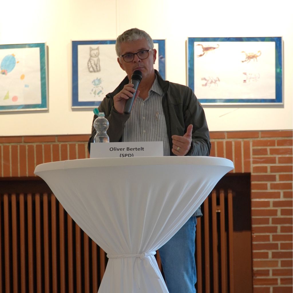 Die Eröffnung der Podiumsdiskussion übernahm Herr Achaz von der Schulenburg, Vorsitzender des Schulvereins. Er erinnerte an die wertvolle Erfahrung aus dem Vorjahr und wünschte sich auch diesmal eine sachliche und respektvolle Diskussionskultur. Anschließend übergab er das Wort an Frau Vogt, die an diesem Vormittag souverän durch die Debatte führte.